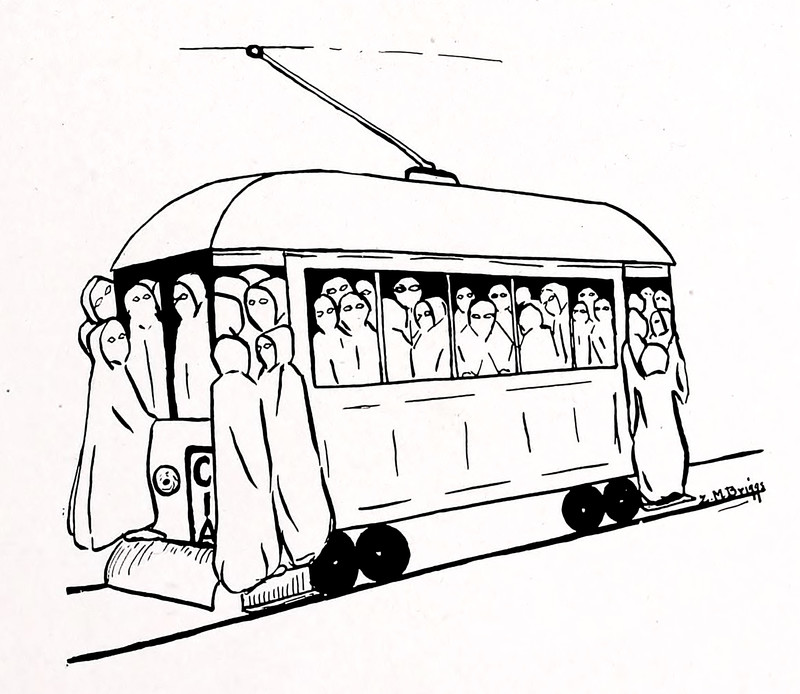 #vintage illustration #stick figure #1930s #illustration #trolley #poem