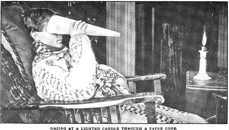 Staring into the depths: an illustration from a 1913 issue of Cosmopolitan magazine. The caption reads: "Gazing at a lighted candle through a paper cone."