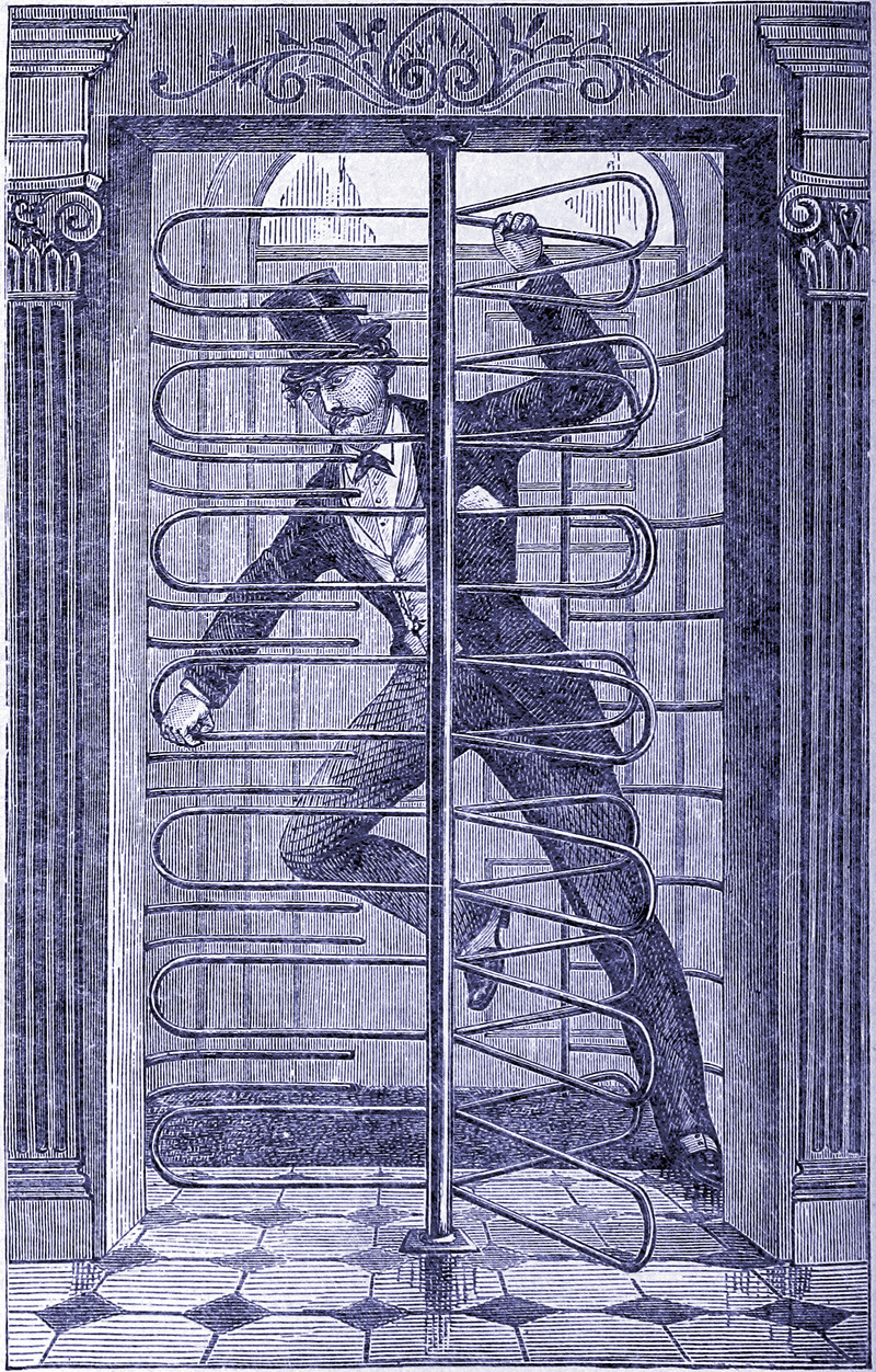 #vintage illustration #turnstile #revolving door #mantrap #illustration