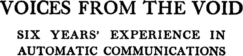 Here's a precursor to Twitter bots.  Voices from the Void: Six Years' Experience in Automatic Communications by Hester Travers Smith, 1919.