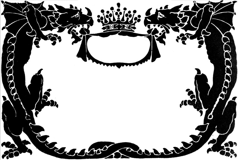 #vintage illustration #dragon #ornate frame #crown #illustration #two dragons #double dragon