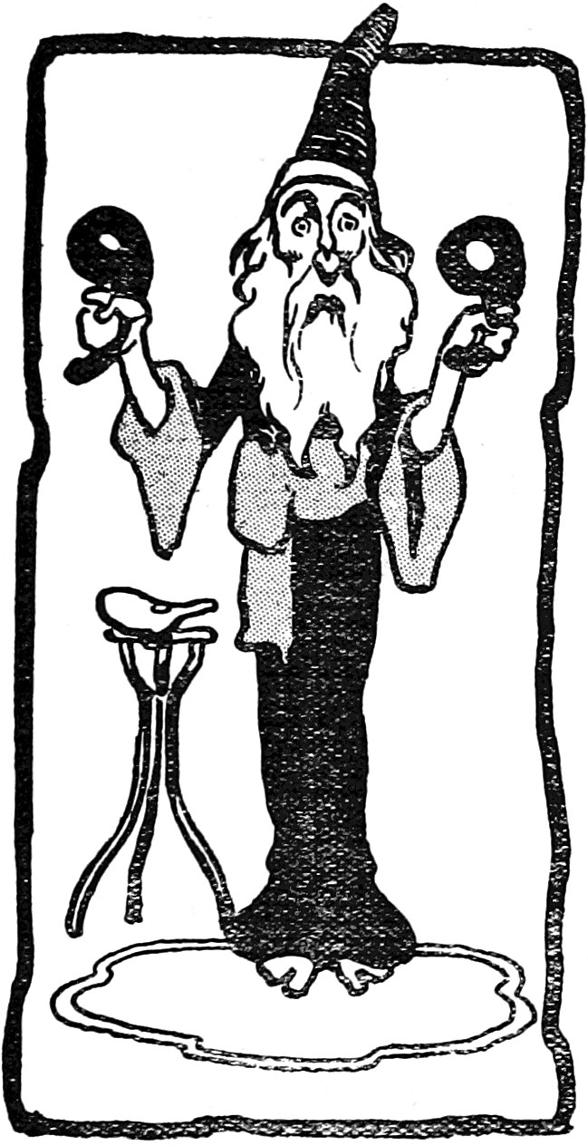 Our illustration of a wizard wielding two nines appears Bachelor Ballads and Other Lazy Lyrics by Harry Spurr, 1899.