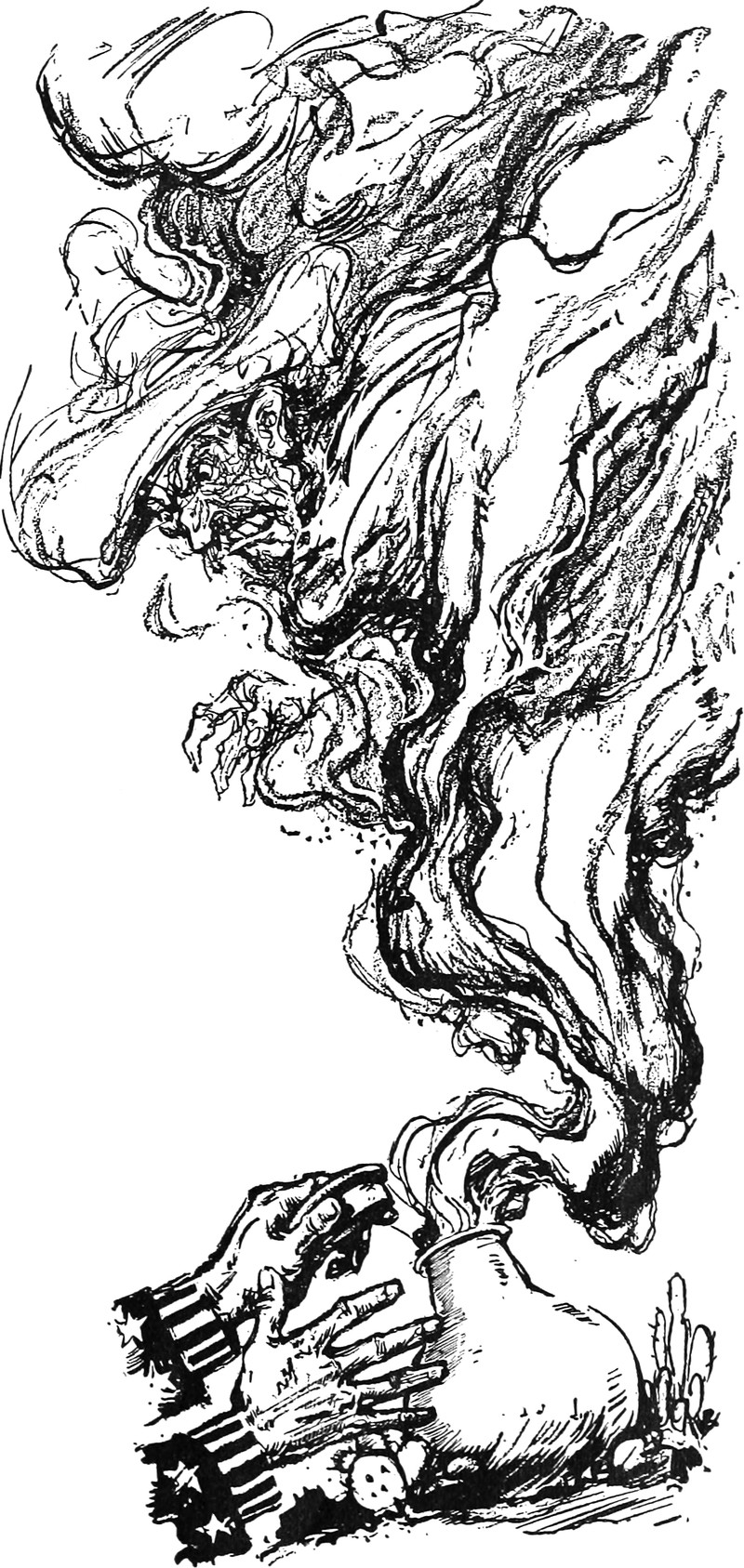 #vintage illustration #genie #genie bottle #mexico #u.s. intervention #angry spirit #bottled ghost #illustration #art