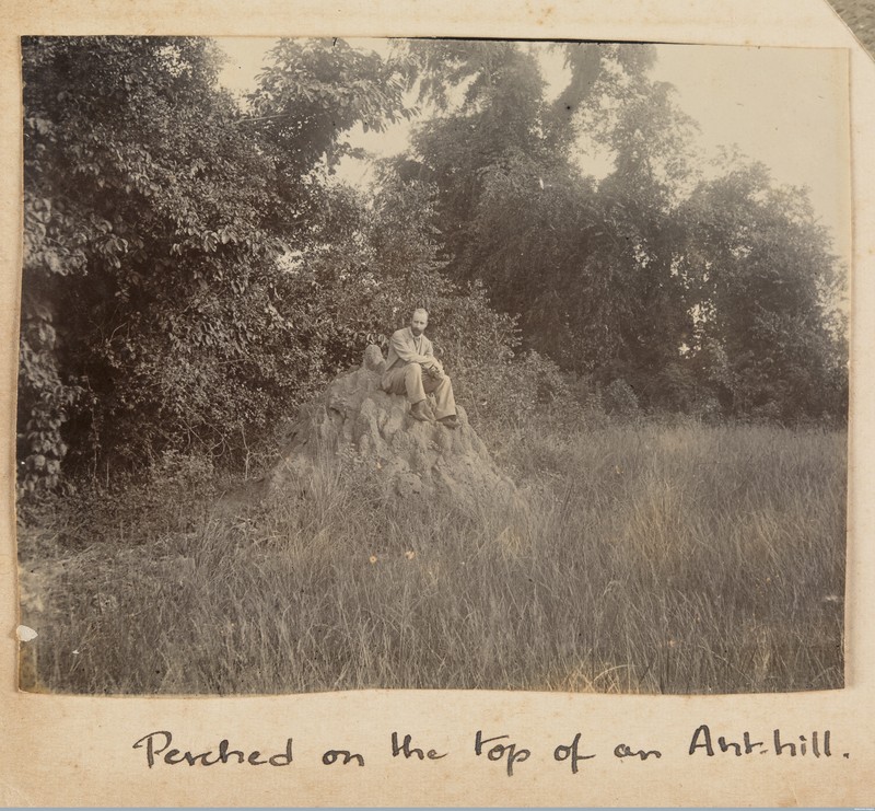 "Perched on the top of an anthill."  Sir Albert Ruskin Cook, c.1896, Uganda.  (Scanned by the Wellcome Library.)
