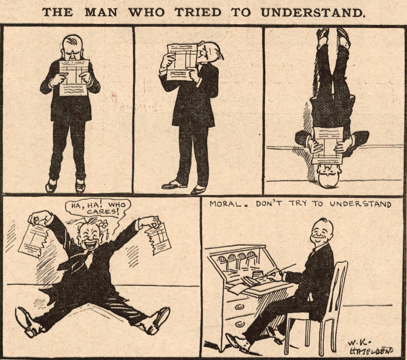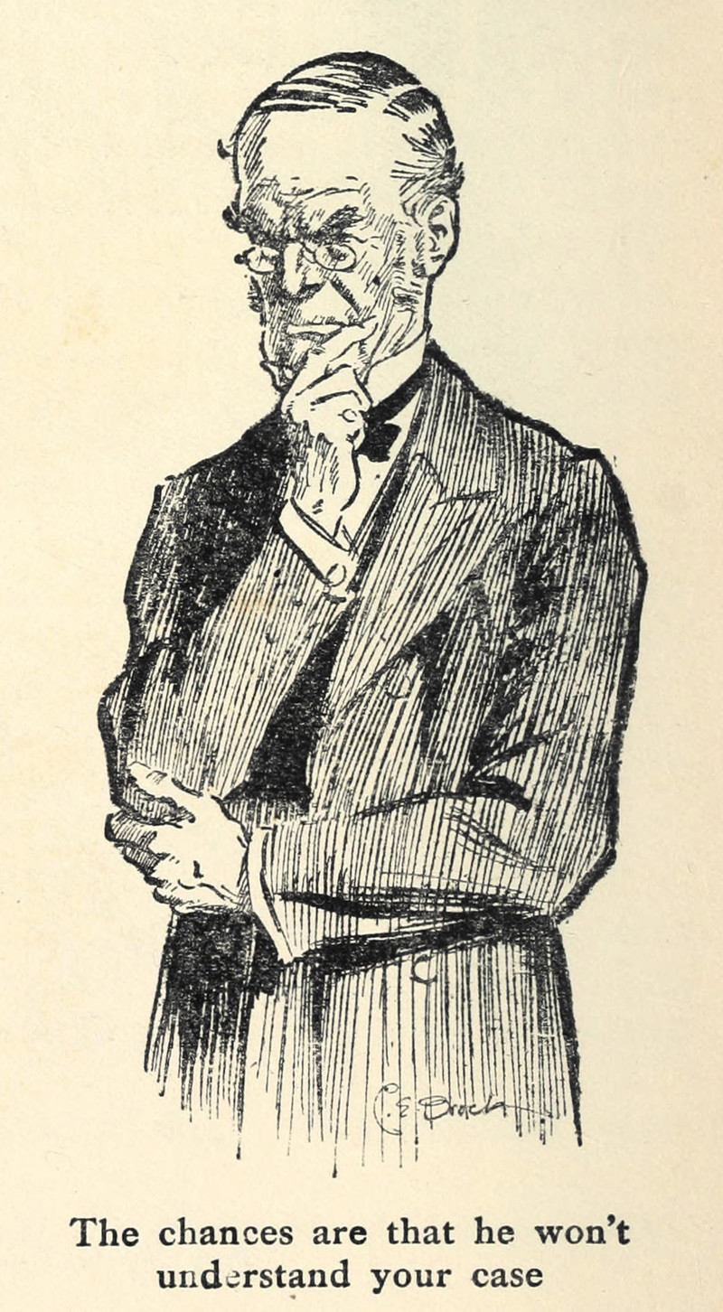 "The chances are that he won't understand your case."  From Princess Mary's Gift Book, 1914.  Speaking of understanding, Understanding herself was a Roman deity (History of the Heathen Gods and Heroes of Antiquity by William Sheldon, 1816).