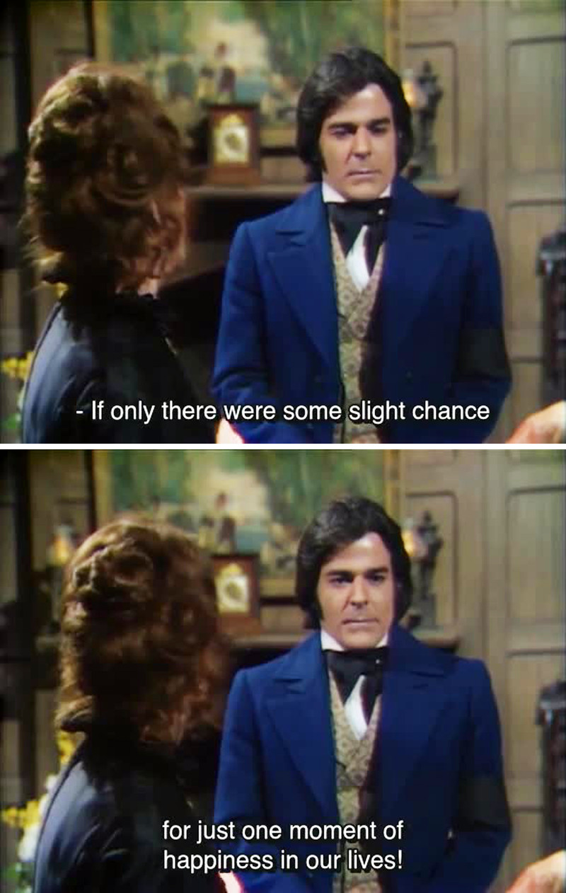 "If only there were some slight chance for just one moment of happiness in our lives!"  From Dark Shadows episode 1205.