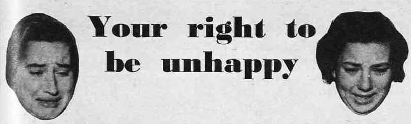 "Your right to be unhappy."  From The Australian Women's Weekly, 1961.