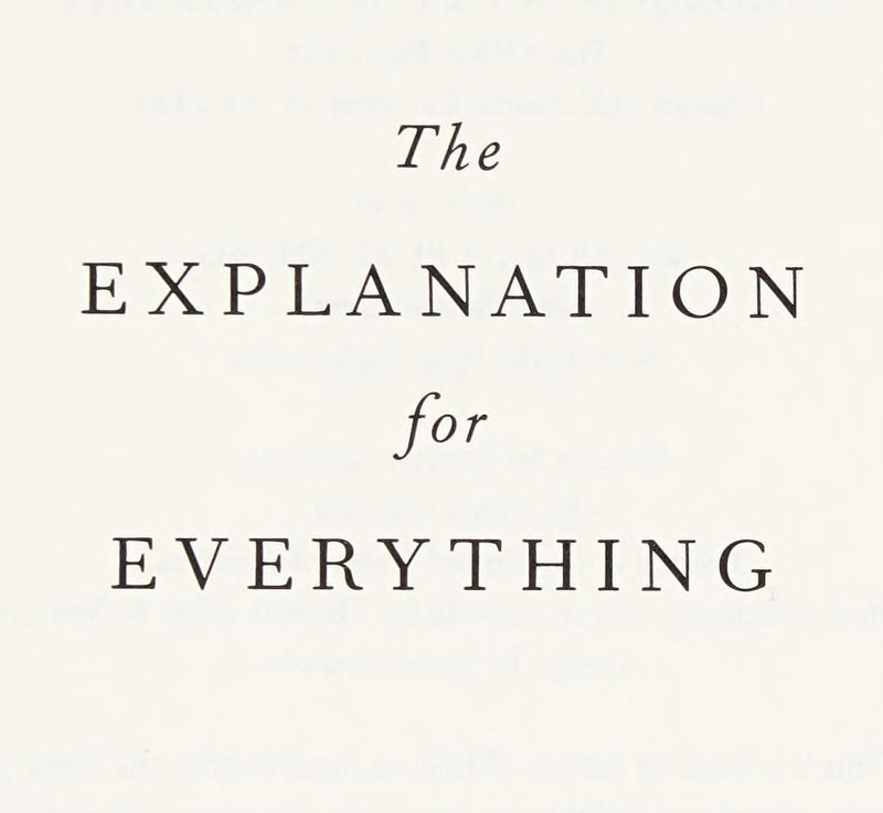 The explanation for everything turns out to be 338 pages long ... which is actually rather concise, considering just how much is involved in "everything." From The Explanation for Everything by Lauren Grodstein.