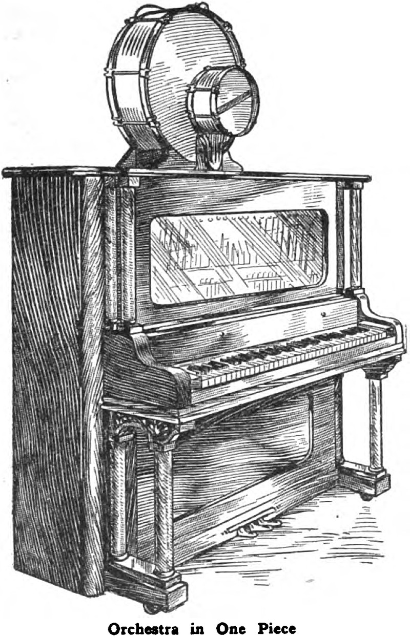 #vintage illustration #piano #illustration #upright piano #one piece orchestra #one man band