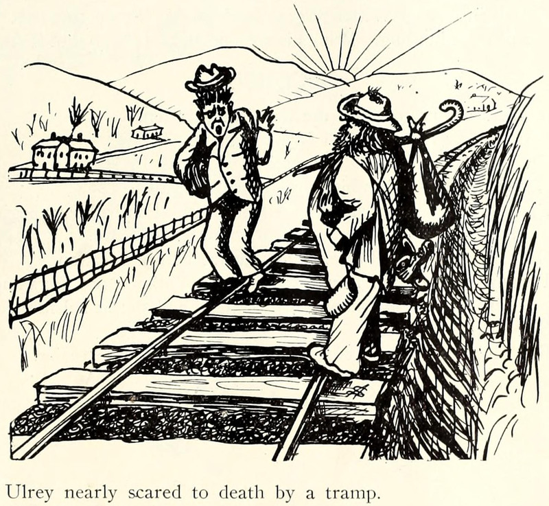 #vintage illustration #vintage yearbook #tramp #yearbook #hobo #railroad tracks #vagabond