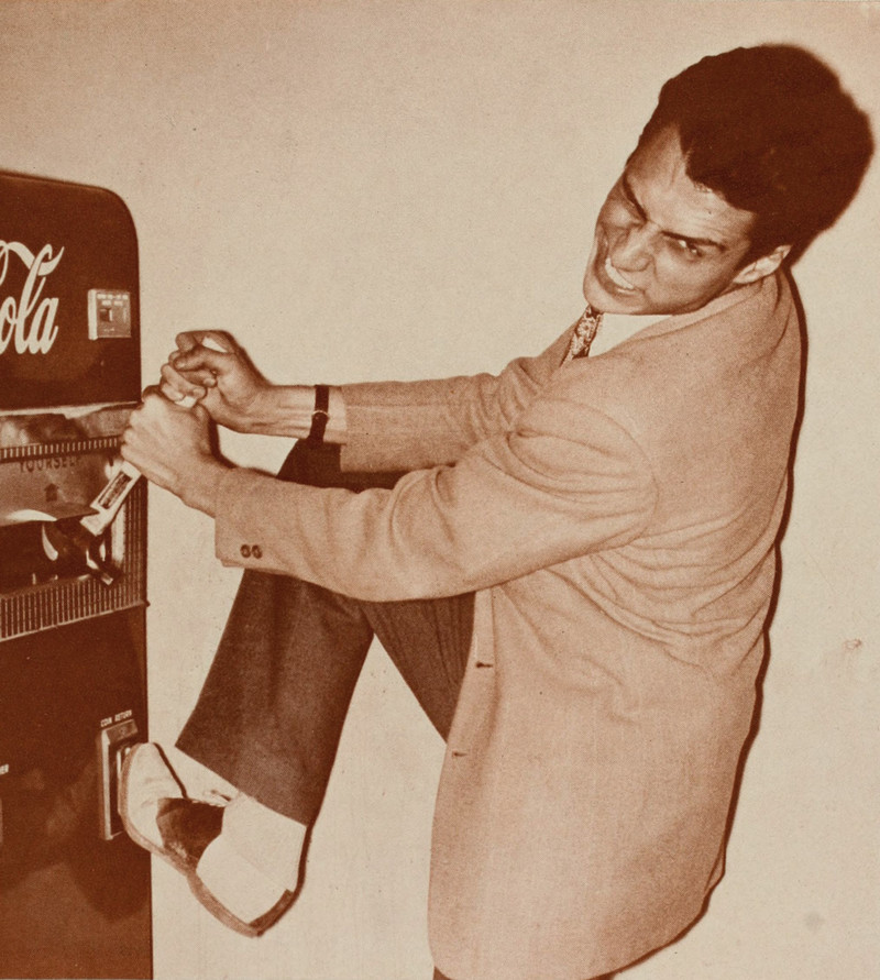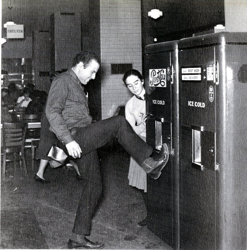 Here's a precursor to the Atkins diet. This ice cream vending machine has been marked "Permanently out of order." From Hunter College's Wistarion yearbook, 1963.