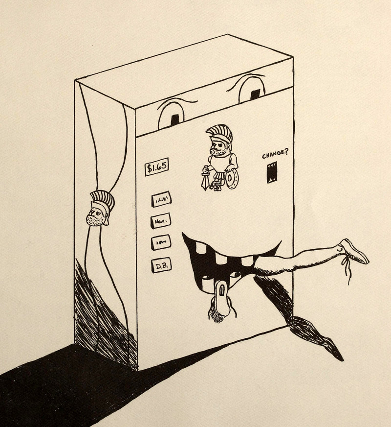 Three reasons why we avoid vending machines: the possibility of glowing entities, the cost, and the fact that we don't get the really nifty machines they have in Japan. From College of the Holy Cross' 1988 yearbook.
