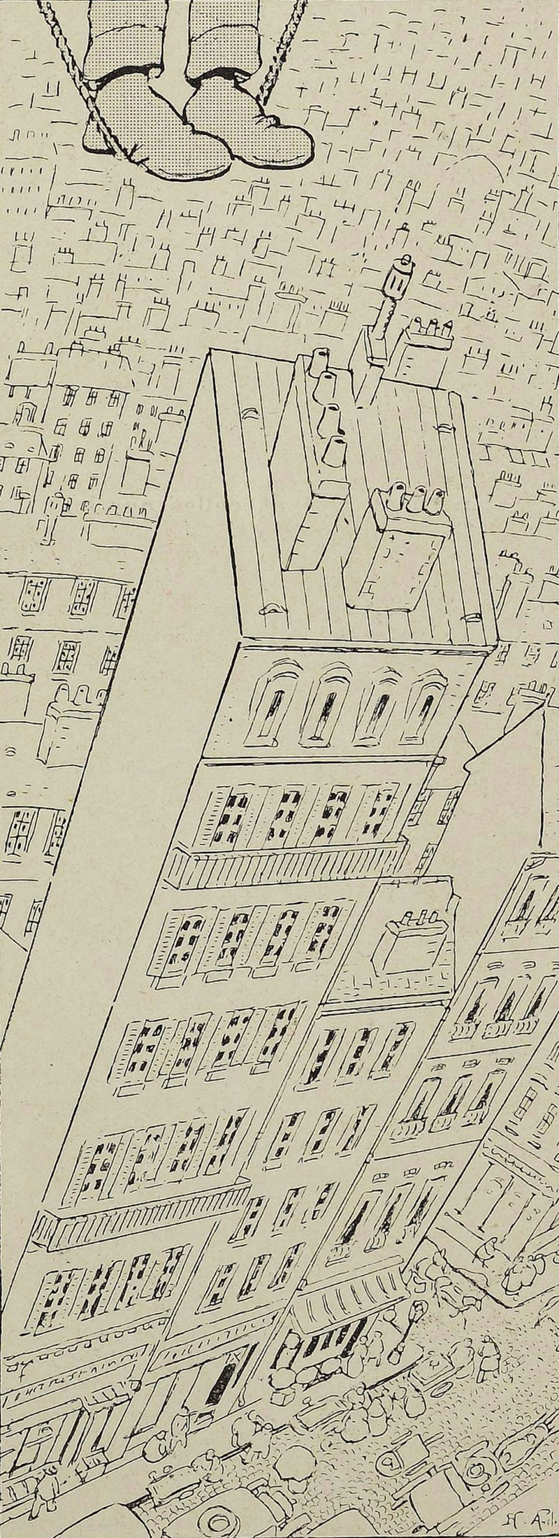 #vintage illustration #illustration #the people could fly #in the air #over the city #vertigo