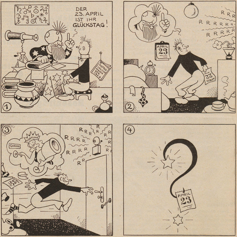 May April 23 be your lucky day.  From Fliegende Blätter, 1934.