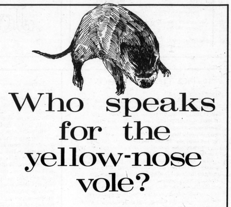"Who speaks for the yellow-nose vole?"  From Maine Times, 1975.