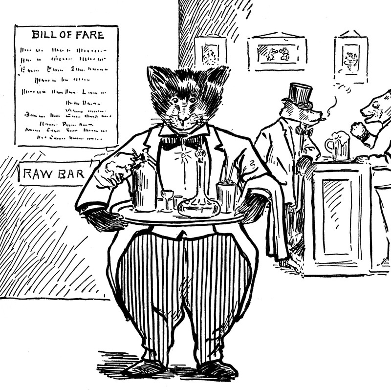 This presumably means that the waiter can tell the diner can't afford to order lobster, but at first glance we thought the waiter took the diner for a lobster, as in "Yes, we serve food to lobster diners."