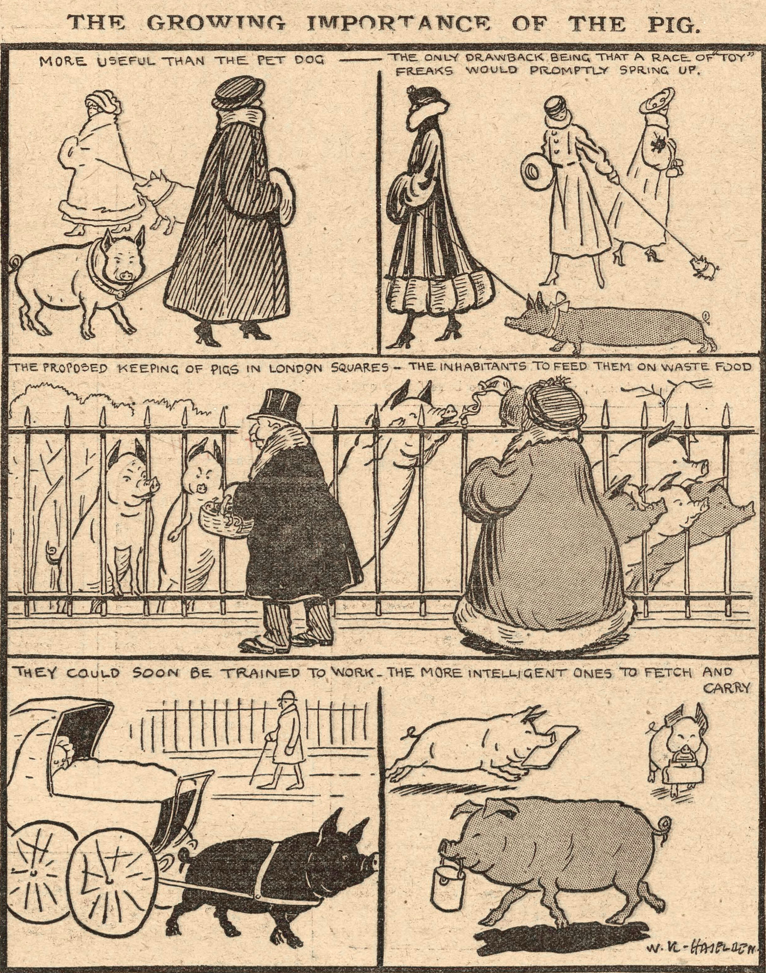 #vintage illustration #pig #illustration #pet walker #pet pig #walking the pig #1910s