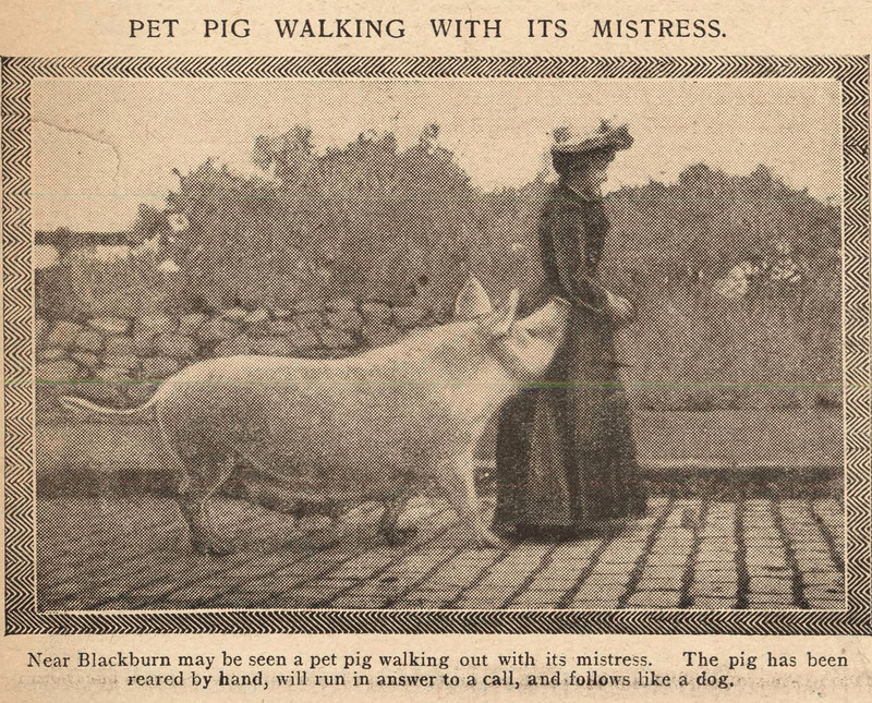 #vintage illustration #pig #1900s #illustration #pet walker #pet pig #walking the pig