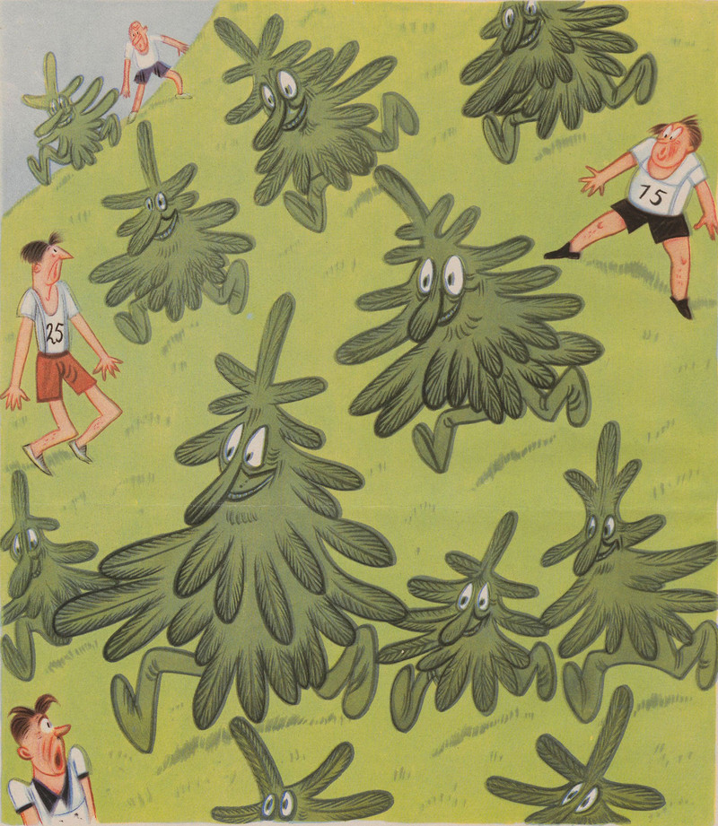 #vintage illustration #anthropomorphism #faces in things #trees #illustration #running trees #running forest #walking tree