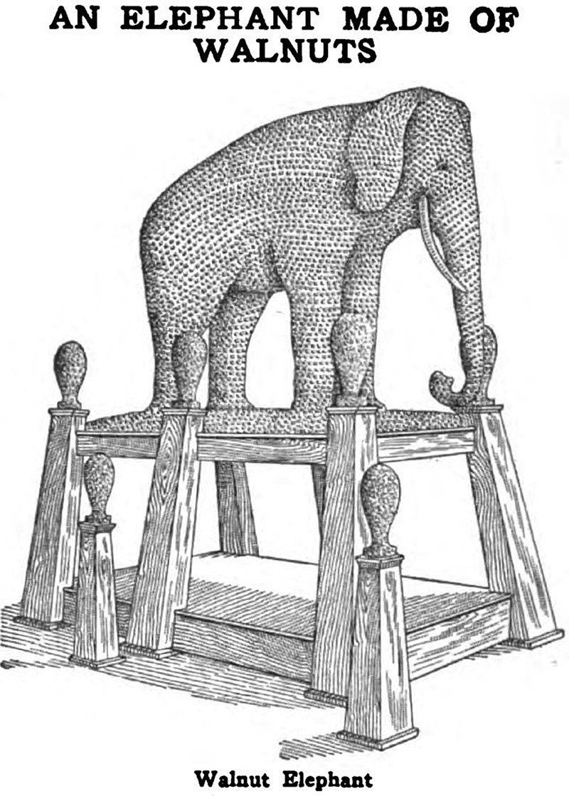 "An elephant made of walnuts."  From Popular Mechanics, 1909.