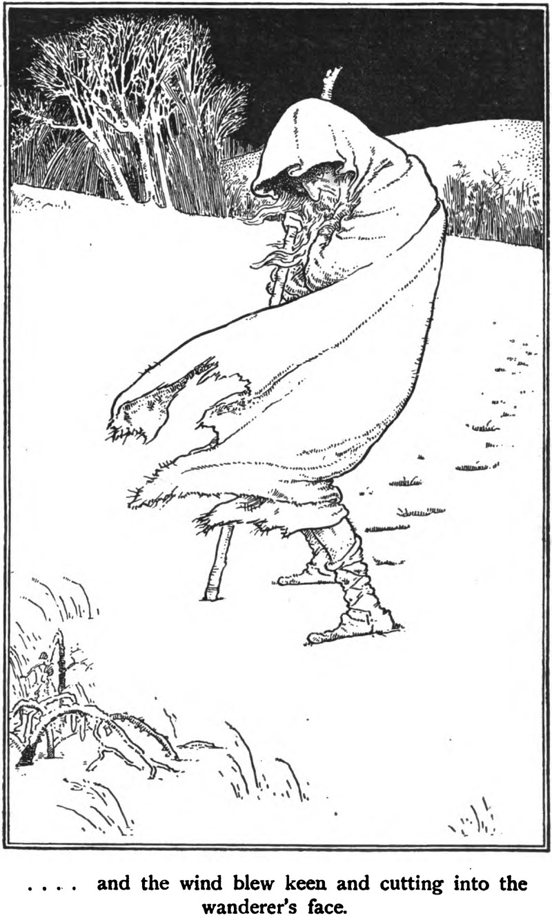 "And the wind blew keen and cutting into the wanderer's face," from Danish Fairy Tales and Legends by Hans Christian Andersen, 1897.