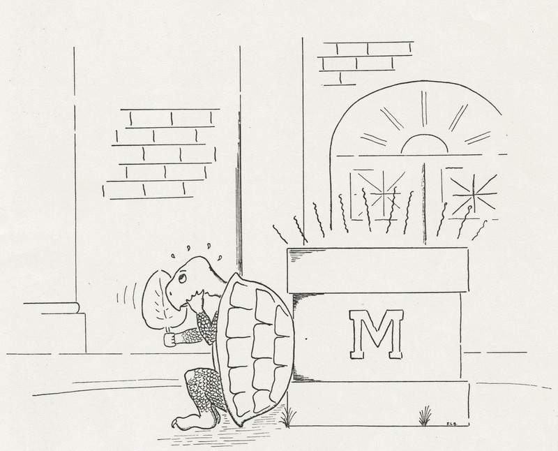 Here's a precursor to a Koopa next to a Warp Pipe in Nintendo's Mario universe. From the August 1942 issue of the Old Line magazine, as scanned by the University of Maryland Libraries.