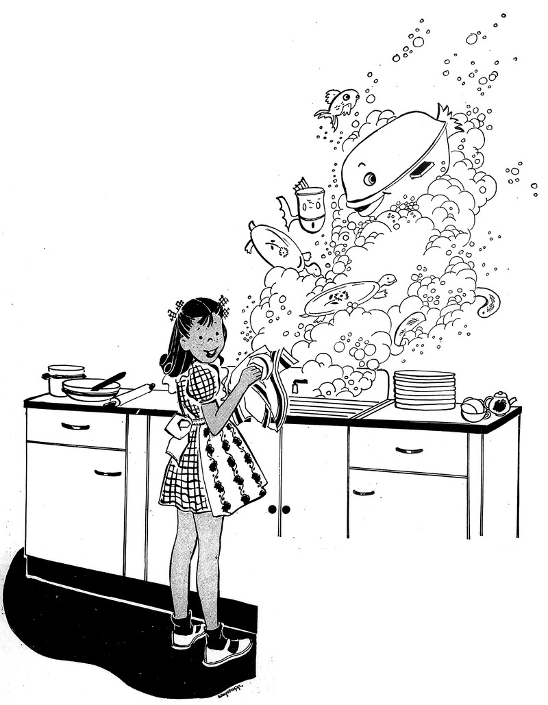 #vintage illustration #1930s #illustration #dishwashing #washing dishes