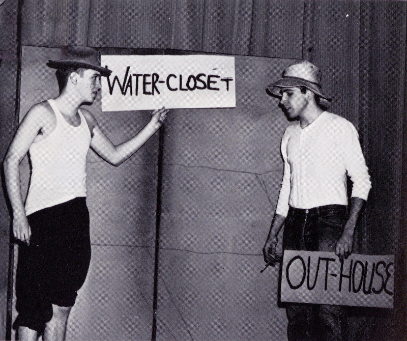 #vintage yearbook #yearbook #outhouse #1960s #vintage men #men #men's room #bathroom #water closet #restroom