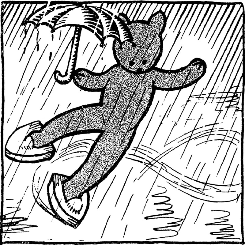 #vintage illustration #rainy day #umbrella #bear #teddy bear #water skiing