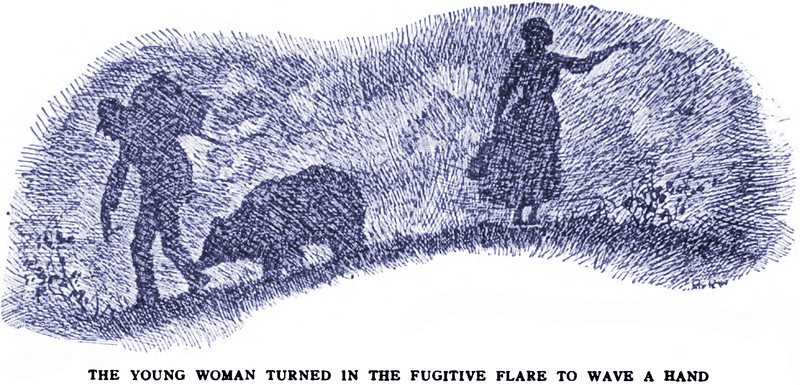 "The young woman turned in the fugitive flare to wave a hand."  From Harper's magazine, 1917.