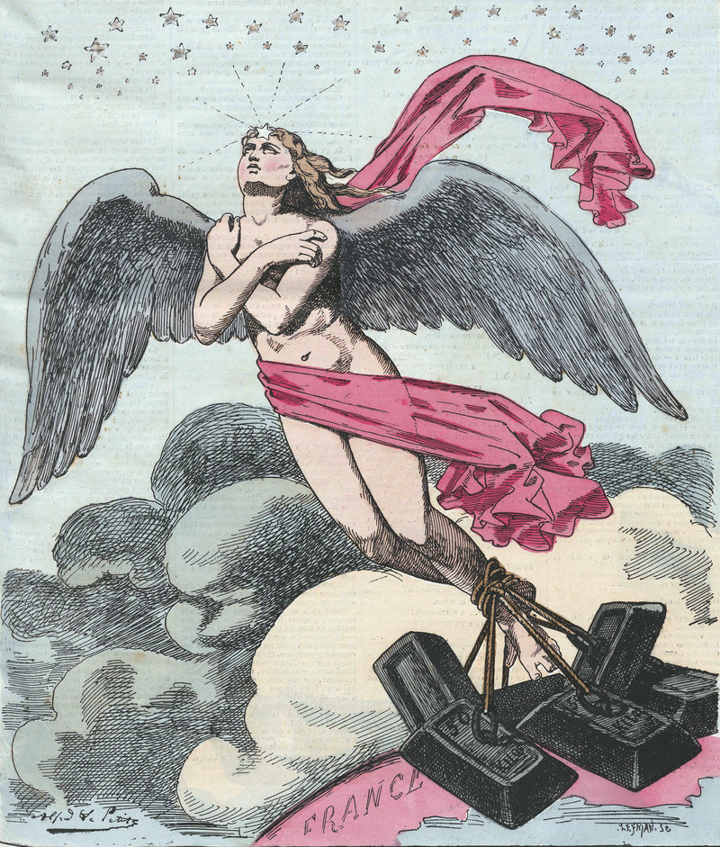 #vintage illustration #political cartoon #idol #crushed #1900s #six arms #weighed down #many armed