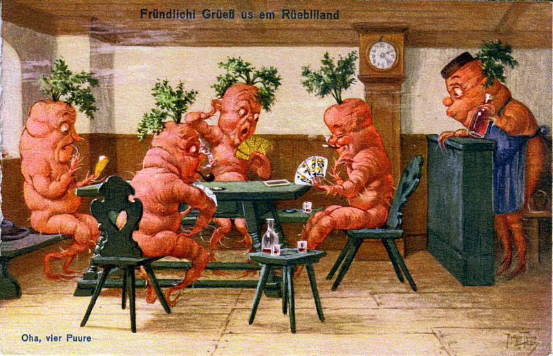 #anthropomorphism #gambling #vintage postcard #carrots #weird postcard #vegetable people #postcard