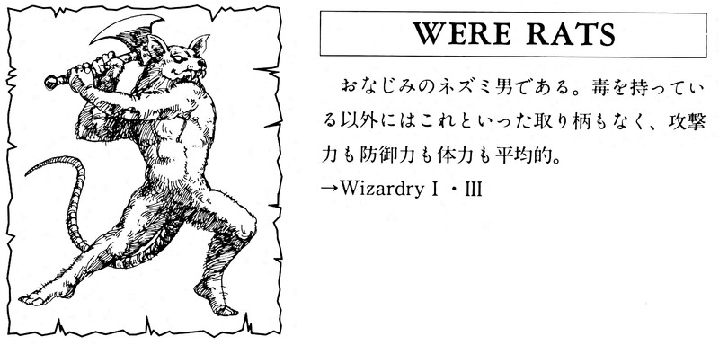 May today's wererats have axes to grind elsewhere, or may they at least be preoccupied with woolgathering. From Wizardry IV: The Return of Werdna Handbook.