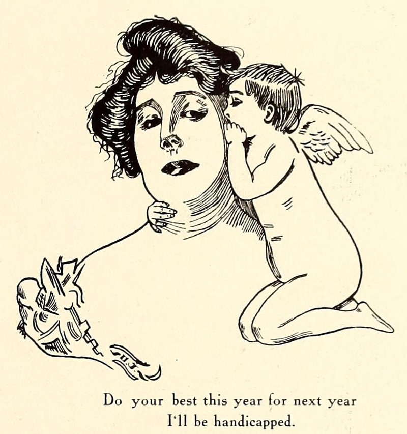 "Do your best this year for next year I'll be handicapped." From Otterbein College's 1905 yearbook.