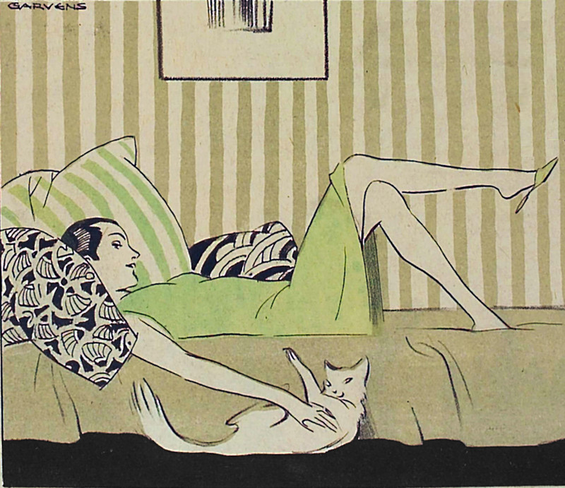 She knows the secrets revealed in How to Be Your Own Cat.  "Green Eyed Cat" by Sogata, 1927, via Yesterday's Print.