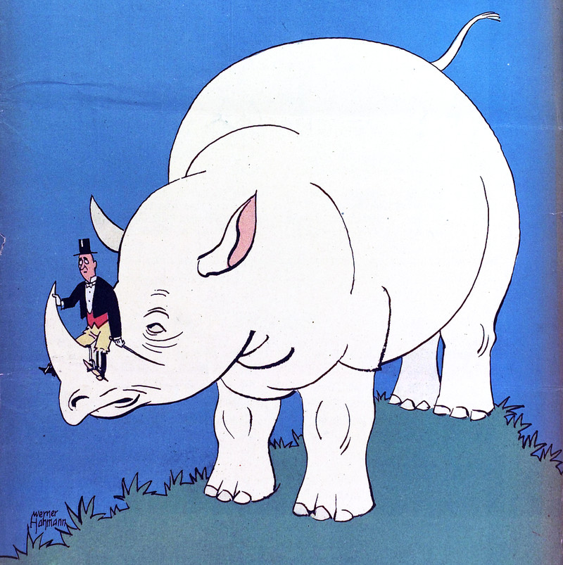 #vintage illustration #tiny man #rhino #white rhino #rhinoceros #art