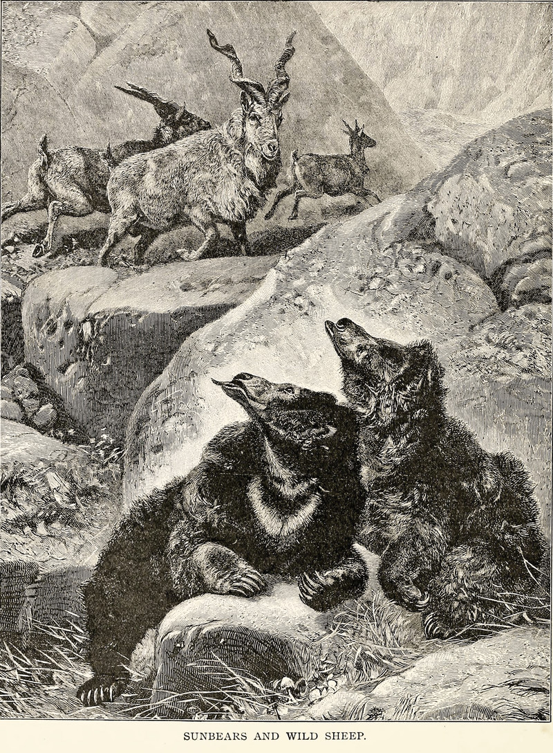 #vintage illustration #bear #sheep #illustration #wild sheep #sunbear #sun bear