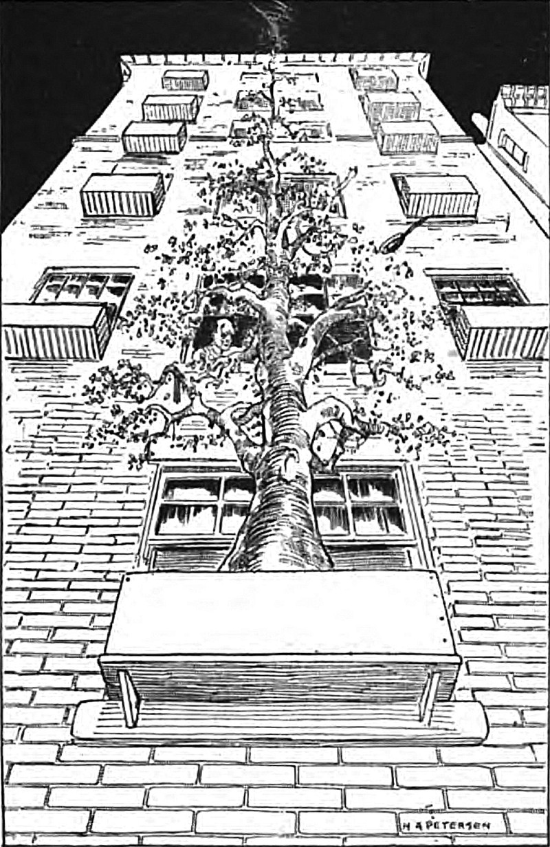 #vintage illustration #tree #urban jungle #window box