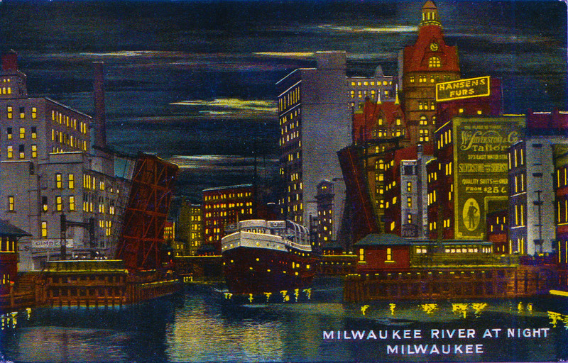 #night #vintage postcard #milwaukee #wisconsin #postcard