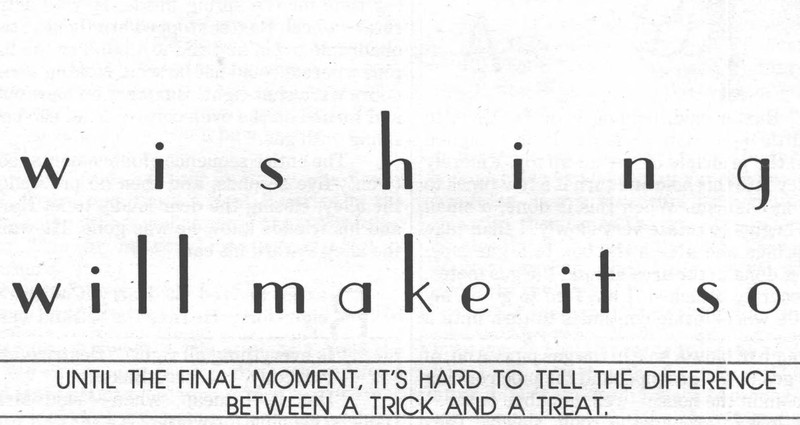 "Wishing will make it so. Until the final moment, it's hard to tell the difference between a trick and a treat."