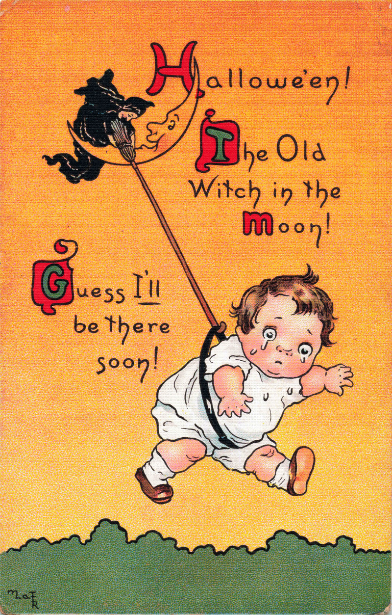 #vintage illustration #witch #hallowe'en #vintage postcard #illustration #lasso #postcard #witch in the moon