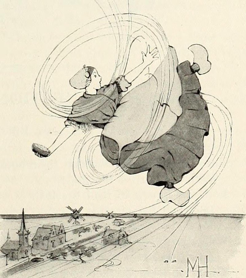 #vintage illustration #dog #wooden shoes #dutch #holland #windmill #illustration #1910s