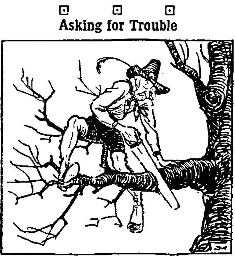 #vintage illustration #woodsman #woodcutter #saw #1920s #lumberjack #illustration #accident prone #tree surgeon #woodman #self sabotage