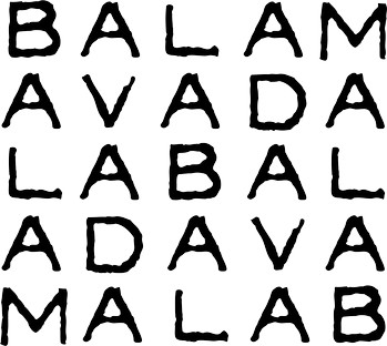 5x5 magic word squares are incredibly rare, with the Pompeiian Sator / Arepo / Tenet / Opera / Rotas being the best known by far. (Futility Closet featured the Revel / Evere / Veoev / Ereve / Lever grid, which reads as a palindromic sentence though not as a magic square.) But there are three other 5x5 word squares explained in The Young Wizard's Hexopedia, including this one: Balam / Avada / Labal / Adava / Malab. Balam is a name for supernatural intuition, derived from the diviner called Balaam in the Torah. Avada is an Estonian word that means "open." Labal is the occult name for the revealer of all the mysteries of the Earth (described in The Lesser Key of Solomon). Adava is a Marathi word for a winding road. And Malab is a Somali word for honey, which is a code for "alchemical gold," which itself is a code for immortality. Woven together into a grid, these words form a charm that conjures magic insight so as to reveal the mysterious pathway toward everlasting light.