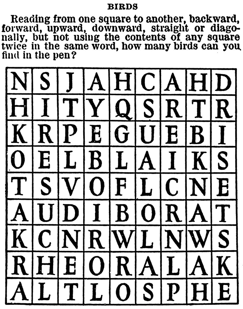 From The Children's Newspaper, 1936. Answers: Carthorse, orchestra; garden, gander; slipper, ripples; stream, master; rats, star; organ, groan; lance, clean; loaf, foal; stone, notes.