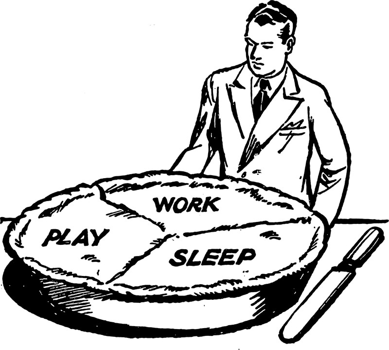 #vintage illustration #lies #pie chart #balanced #food #pie #giant pie #day planning #work and play