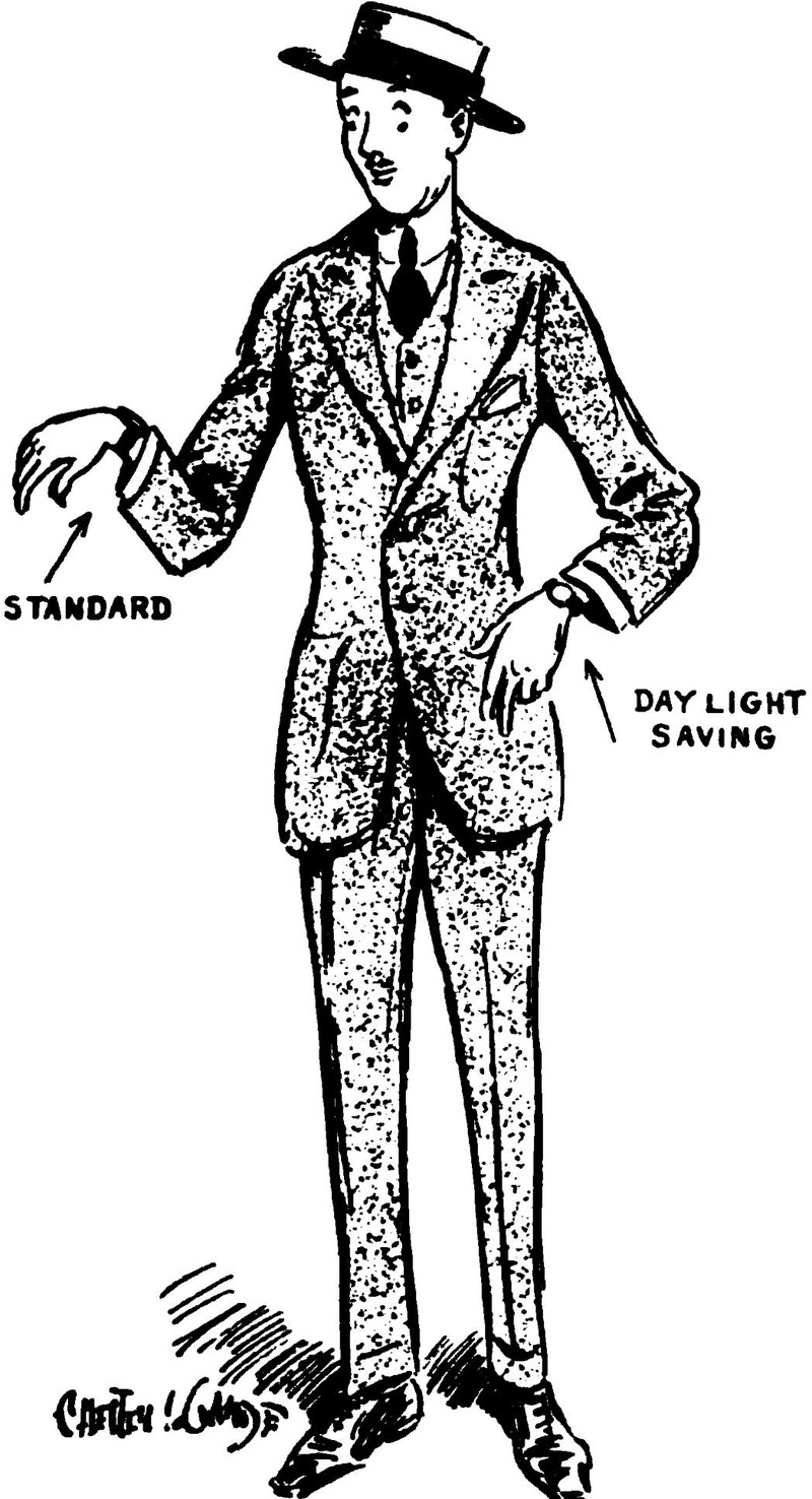 Daylight saving time and standard.  From The Judge, 1921.