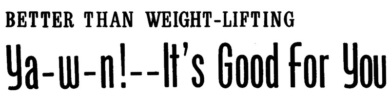 "Better than weight-lifting.  Ya-w-n!  It's good for you."  From The Aberree, 1962.