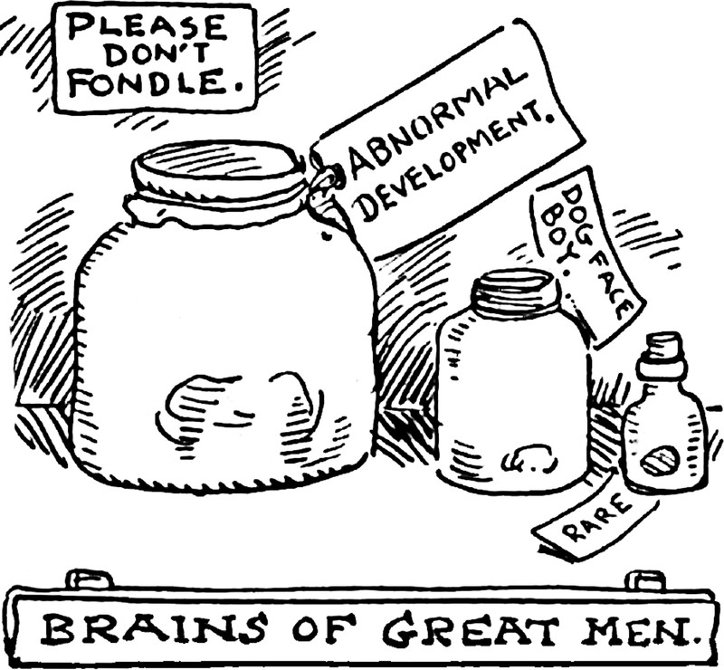 Here's a precursor to the "Abby Normal" brain from Young Frankenstein, courtesy of Cartoons Magazine, 1917.