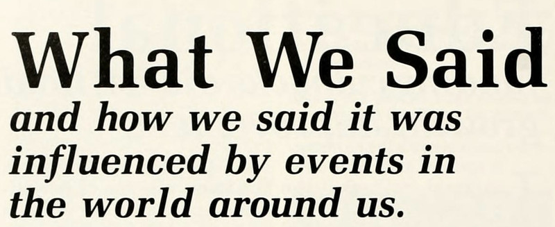 Probably true -- "what we said and how we said it was influenced by events in the world around us."  From Pembroke's 1992 yearbook.
